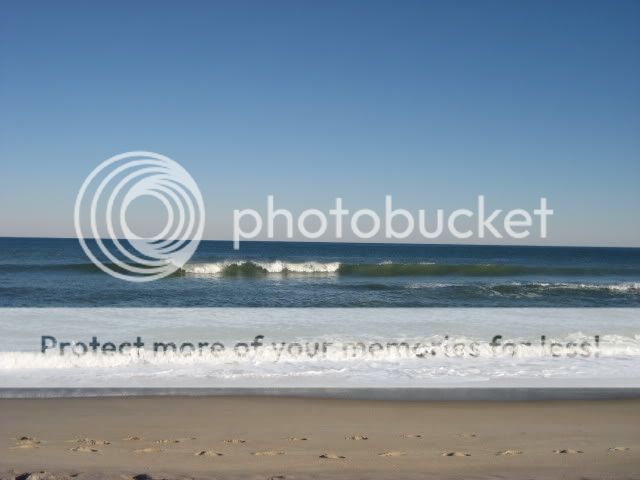 The tide is dropping, and there is a knee high set rolling through every 5 minutes or so. It's mushy, but the winds have let up little. The cold is still here. There could be some fun if you're up for it.